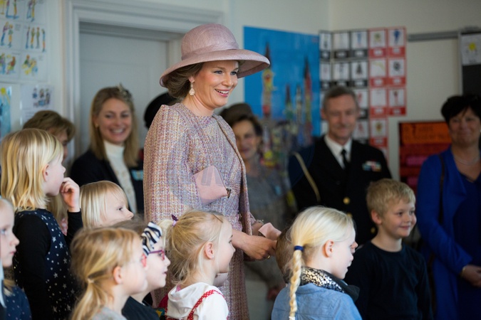 Krolowa Matylda i ksiezna Mary na spotkaniu z dziecmi w szkole