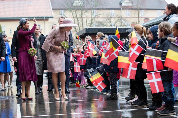 Krolowa Matylda i ksiezna Mary na spotkaniu z dziecmi w szkole