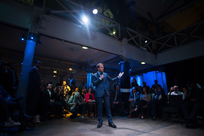 Emmanuel Macron na spotkaniu z wyborcami
