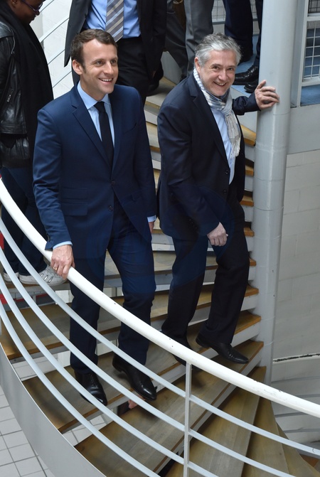Emmanuel Macron podczas wizyty w przedsiebiorstwie APF Entreprise 93