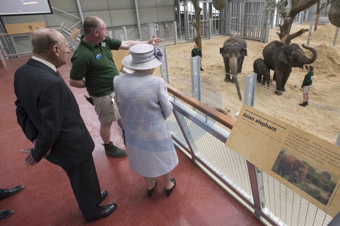 Krolowa Elzbieta II i ksiaze Filip w ZOO na otwarciu centrum dla sloni