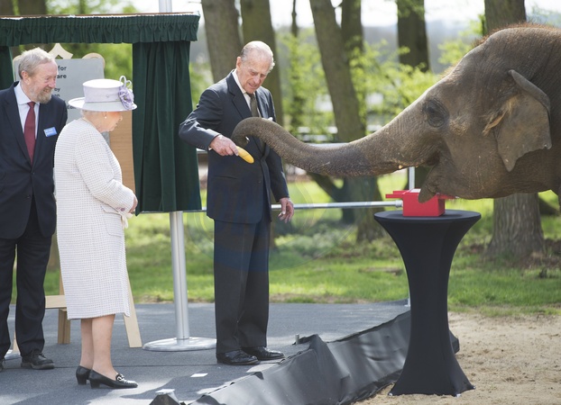 Krolowa Elzbieta II i ksiaze Filip w ZOO na otwarciu centrum dla sloni