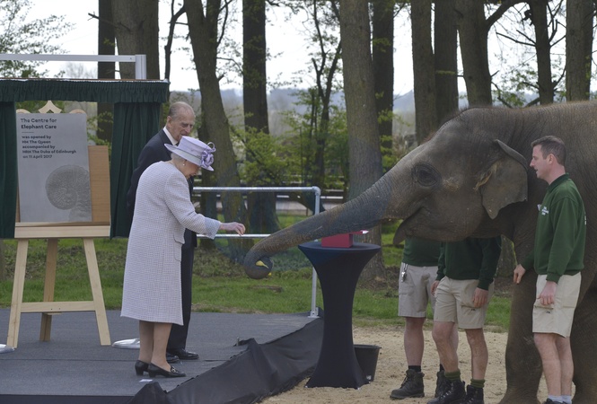 Krolowa Elzbieta II i ksiaze Filip w ZOO na otwarciu centrum dla sloni