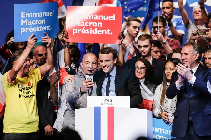 Emmanuel Macron na spotkaniu wyborczym w Pau