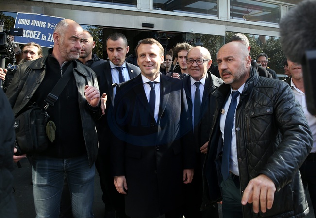 Emmanuel Macron w pociagu, w drodze na spotkanie w Nantes
