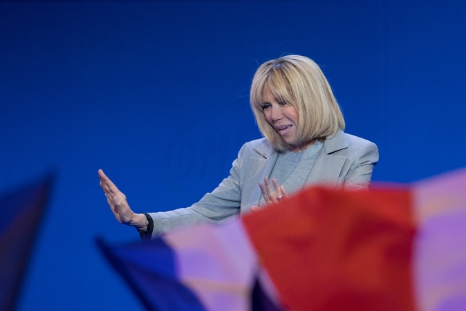 Emmanuel Macron z zona ciesza sie ze zwyciestwa w 1 turze wyborow