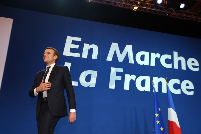 Emmanuel Macron z zona ciesza sie ze zwyciestwa w 1 turze wyborow