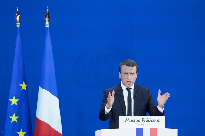 Emmanuel Macron z zona ciesza sie ze zwyciestwa w 1 turze wyborow