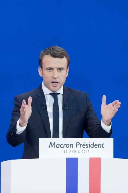 Emmanuel Macron z zona ciesza sie ze zwyciestwa w 1 turze wyborow