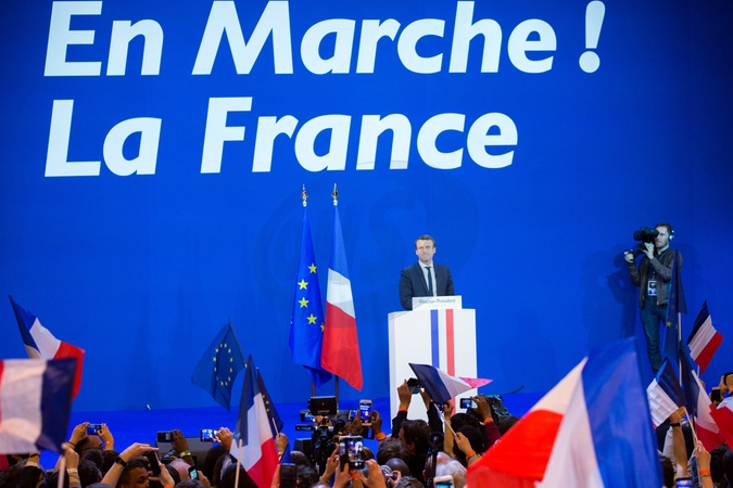 Emmanuel Macron z zona ciesza sie ze zwyciestwa w 1 turze wyborow