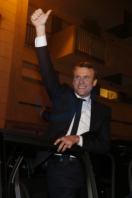 Szczesliwy Emmanuel Macron pozdrawia Francuzow