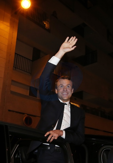 Szczesliwy Emmanuel Macron pozdrawia Francuzow