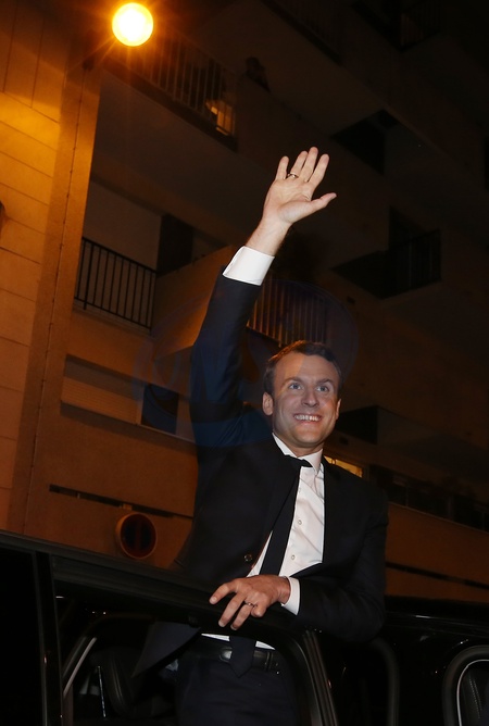Szczesliwy Emmanuel Macron pozdrawia Francuzow