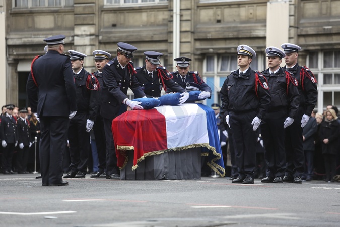Pogrzeb francuskiego policjanta, ktory zginal w ataku terrorystow