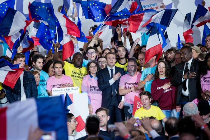 Emmanuel Macron z zona i Segolene Royal na spotkaniu przedwyborczym