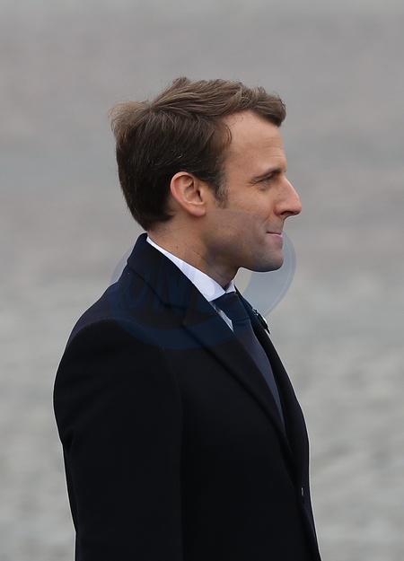 Francois Hollande i Emmanuel Macron podczas obchodow 72. rocznicy zakonczenia II wojny swiatowej