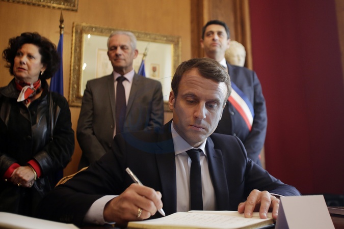 Emmannuel Macron z zona na spotkaniu w miasteczku dOradour-sur-Glane