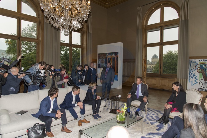Arnold Schwarzenegger na spotkaniu z merem Paryza