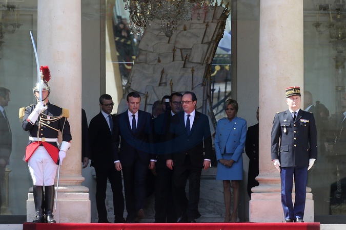 Emmanuel Macron i Francois Hollande - przekazanie wladzy