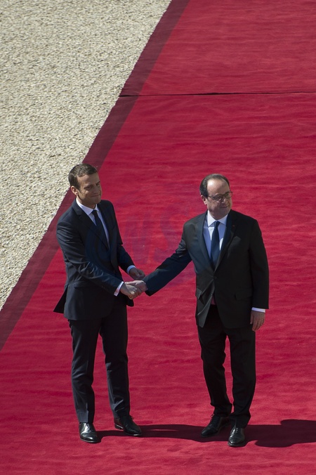 Emmanuel Macron i Francois Hollande - przekazanie wladzy