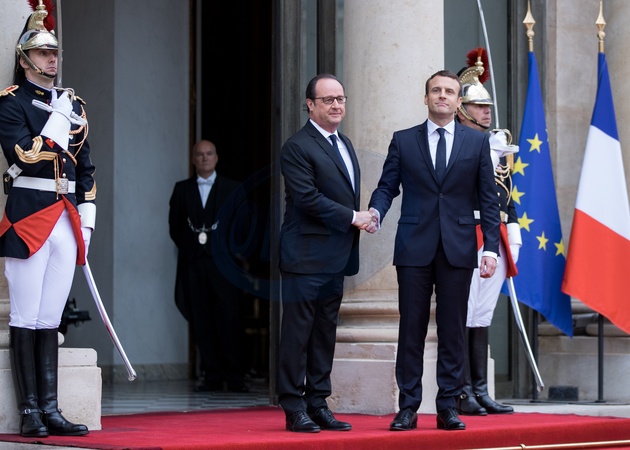 Emmanuel Macron i Francois Hollande - przekazanie wladzy