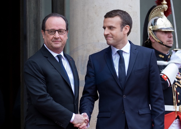 Emmanuel Macron i Francois Hollande - przekazanie wladzy