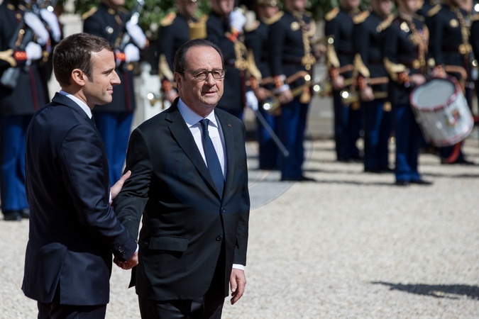Emmanuel Macron i Francois Hollande - przekazanie wladzy