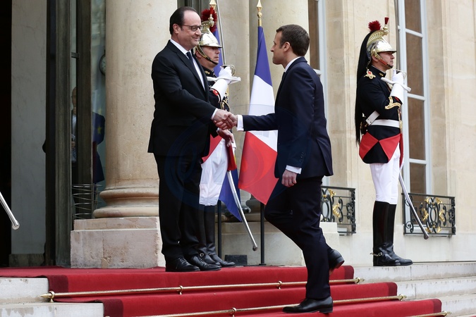 Emmanuel Macron i Francois Hollande - przekazanie wladzy