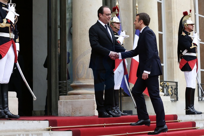 Emmanuel Macron i Francois Hollande - przekazanie wladzy