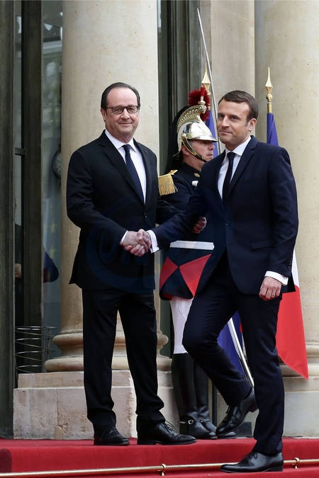 Emmanuel Macron i Francois Hollande - przekazanie wladzy