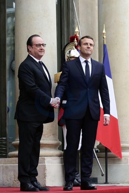 Emmanuel Macron i Francois Hollande - przekazanie wladzy