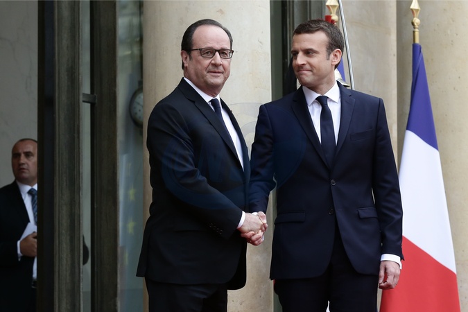 Emmanuel Macron i Francois Hollande - przekazanie wladzy