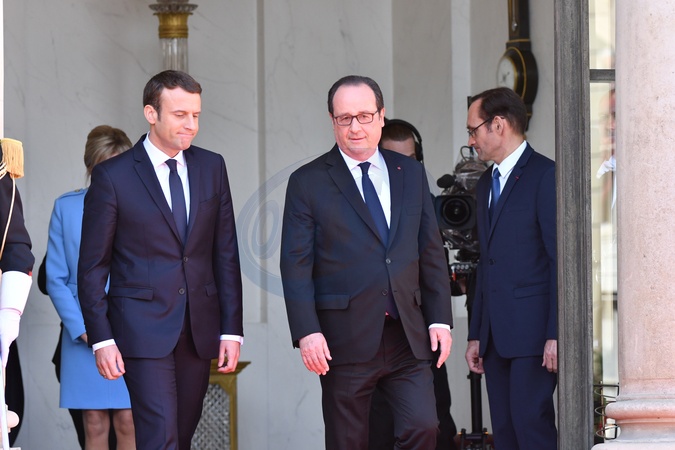 Emmanuel Macron i Francois Hollande - przekazanie wladzy
