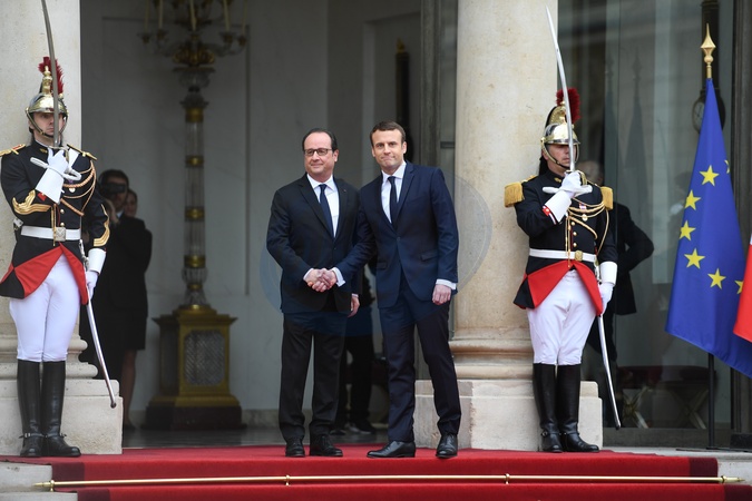 Emmanuel Macron i Francois Hollande - przekazanie wladzy