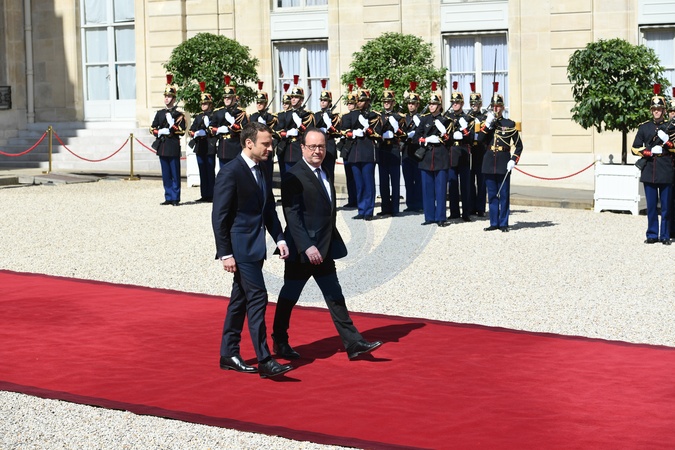Emmanuel Macron i Francois Hollande - przekazanie wladzy