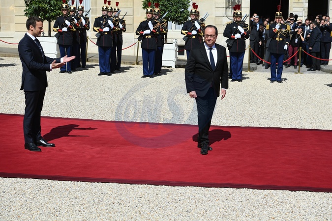 Emmanuel Macron i Francois Hollande - przekazanie wladzy