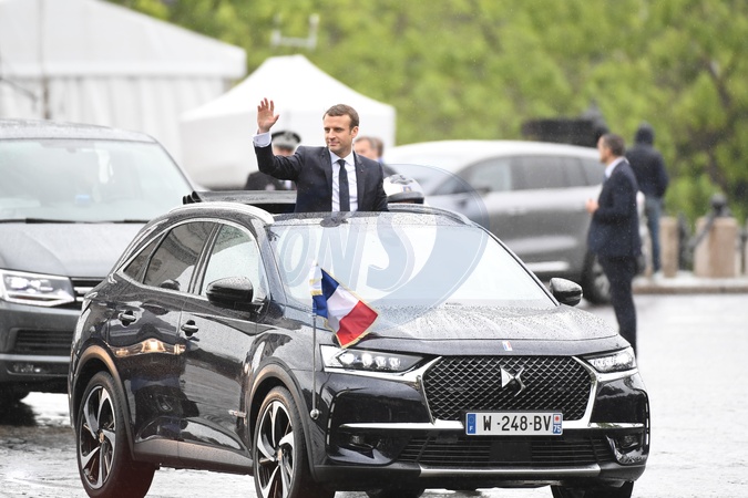 Emmanuel Macron oddal hold nieznanym zolnierzom przy Luku Triumfalnym