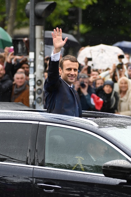 Emmanuel Macron oddal hold nieznanym zolnierzom przy Luku Triumfalnym