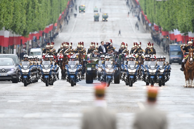 Emmanuel Macron oddal hold nieznanym zolnierzom przy Luku Triumfalnym
