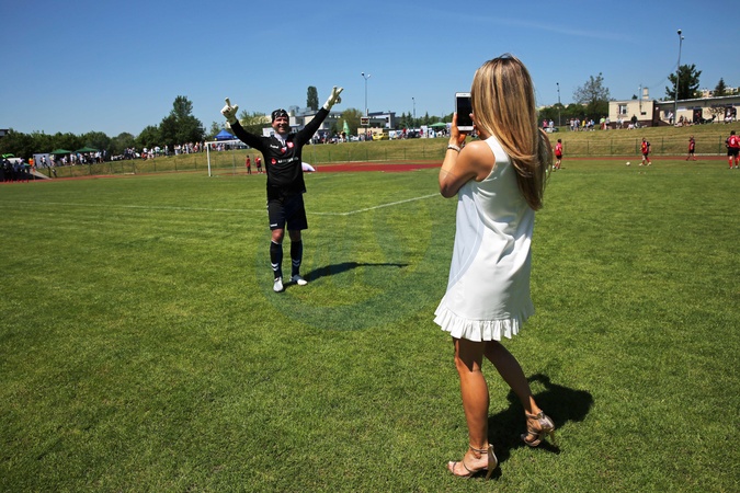 Malgorzata Rozenek i Radoslaw Majdan z dziecmi na meczu w Busku Zdroju