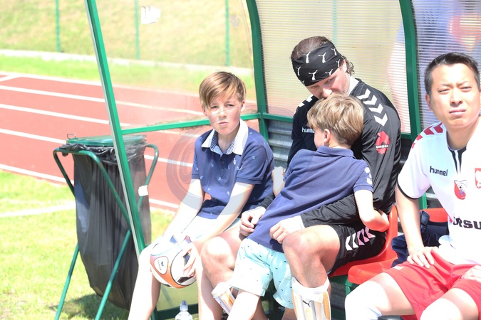 Malgorzata Rozenek i Radoslaw Majdan z dziecmi na meczu w Busku Zdroju