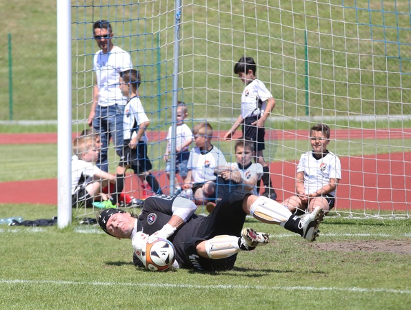 Malgorzata Rozenek i Radoslaw Majdan z dziecmi na meczu w Busku Zdroju