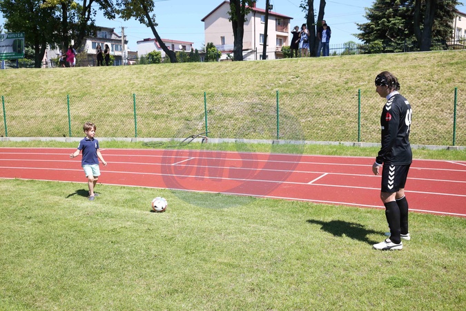 Malgorzata Rozenek i Radoslaw Majdan z dziecmi na meczu w Busku Zdroju