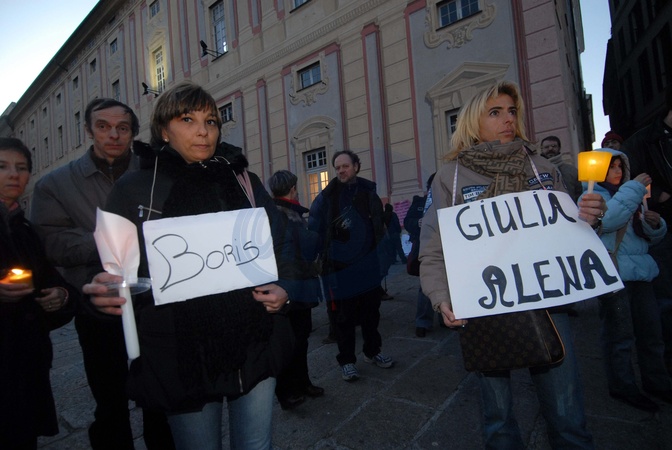 Wlosi protestuja w sprawie decyzji wladz bialoruskich odwolujacych przyjazdy kolejnych dzieci-sierot