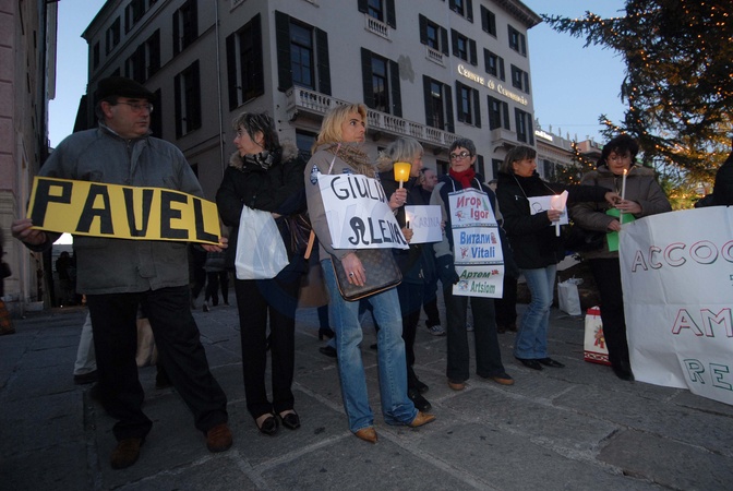 Wlosi protestuja w sprawie decyzji wladz bialoruskich odwolujacych przyjazdy kolejnych dzieci-sierot