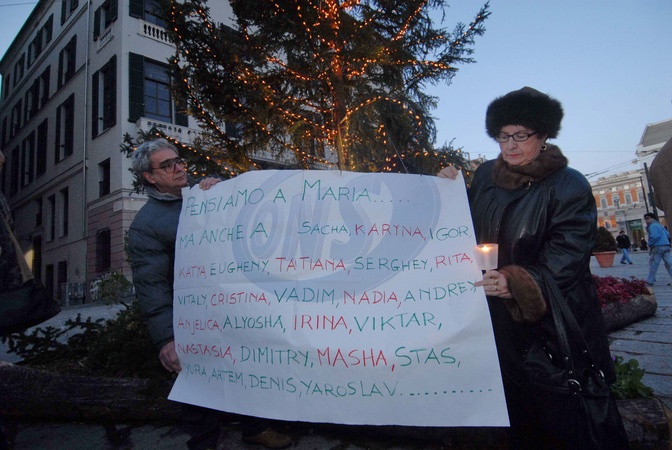 Wlosi protestuja w sprawie decyzji wladz bialoruskich odwolujacych przyjazdy kolejnych dzieci-sierot