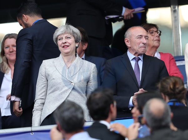 Emmanuel Macron i Theresa May na meczu