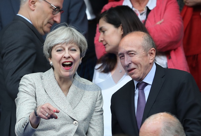 Emmanuel Macron i Theresa May na meczu