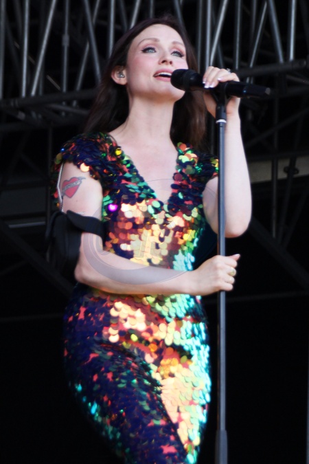 Sophie Ellis Bextor cekinowym kombinezonie na scenie w Kew The Music