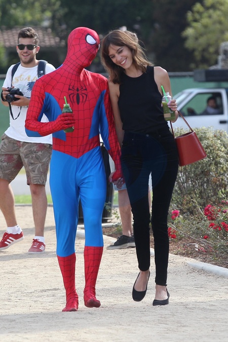 Alexa Chung przytula Spider Mana, plan zdjeciowy